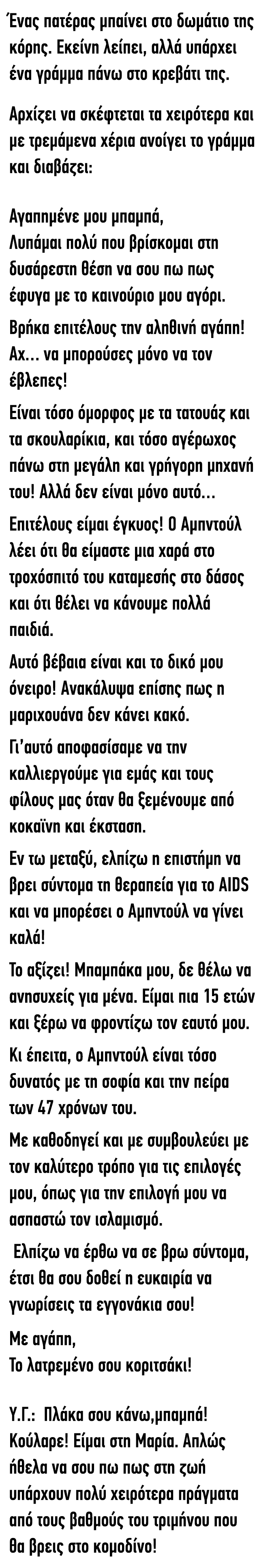 σε Ανέκδοτα Ελεος Ωραιο LOL Τελειο Έξυπνο WIN OMG Κλαμα WTF Ανέκδοτο: Ένας πατέρας μπαίνει στο δωμάτιο της κόρης 23/04/2025, 04:21 29.5χιλ. Προβολές Κοινοποιήστε στο Facebook WhatsApp Viber Facebook Messenger Κοινοποιήστε στο Facebook WhatsApp Viber Facebook MessengerΔείτε ακόμα 👉 ΑΝΕΚΔΟΤΟ: Η γριά και ο βαρβάτος με την τεράστια... αντοχή Δείτε περισσότερα Προηγούμενο ανέκδοτο Ανέκδοτο: Γυρίζει ο Τοτός από την παιδική χαρά και βρίσκει το σκύλο του νεκρό, με τα πόδια ψηλά…. Επόμενο ανέκδοτο Ανέκδοτο: Ένας μαύρος περπατά κάπου στη Ν. Αφρική και ξαφνικά βλέπει ένα πορτοφόλι