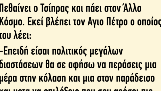 σε ΑνέκδοταΑνέκδοτο: Πεθαίνει ο Τσίπρας και πάει στον άλλο κόσμο