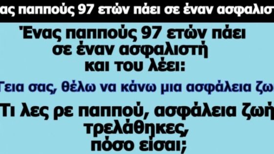 σε ΑνέκδοταΑνέκδοτο: Ένας παππούς 97 ετών πάει σε έναν ασφαλιστή.